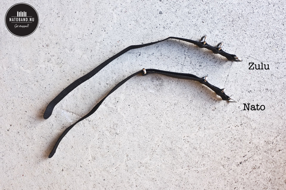 Zuluband är en grövre variant av natoband, med tjockare nylon och kraftigare metallringar. De passar extra bra på större klockor eller när du vill ha en mer robust look.